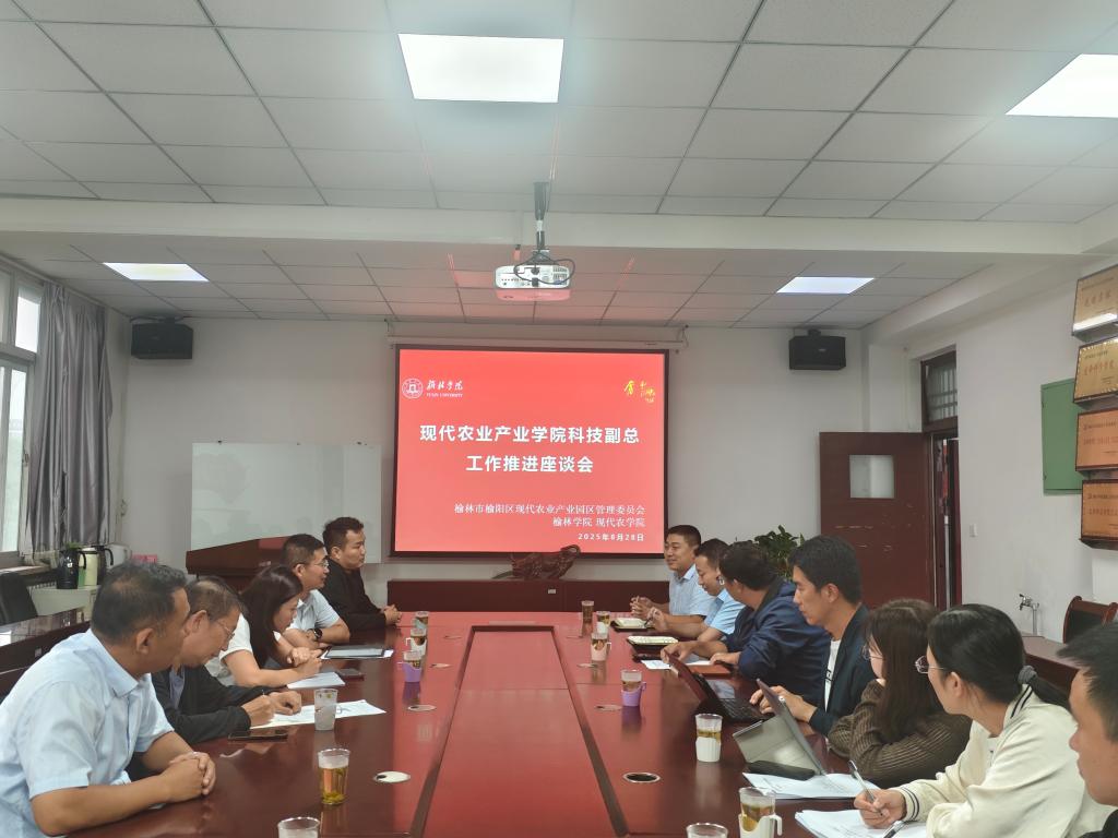 为落实《榆林市榆阳区人民政府、榆林学院共同运行榆林现代农业产业学院》和2025年现代农业产业学院科技人才选聘决议,8月28日,现代农业产业学院“科技副总”工作推进座谈会在现代农学院会议室举行。榆阳区现代农业产业园区管理委员会李荣荣部长应邀参会,蔡建昌书记、严加坤副院长出席,所有科技副总参加,会议由李强副主任主持。