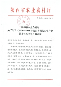 据悉,此次发布的陕西省现代农业产业技术体系名单,是陕西省农业农村厅根据省委省政府坚决打赢脱贫攻坚战和全面实施乡村振兴战略总体部署,结合现代农业发展要求和我省特色产业发展实际,按照“科研首席专家+推广首席专家+重点试验示范站(基地)+技术团队+涉农企业+农村合作社+高素质农民”模式,对原有44个省级农业产业技术体系进行优化调整为37个后设置的。此次,能在陕西省农业农村厅现代农业产业技术体系中担任重要岗位,也是省农业农村厅对我校专家学者的认可与肯定。