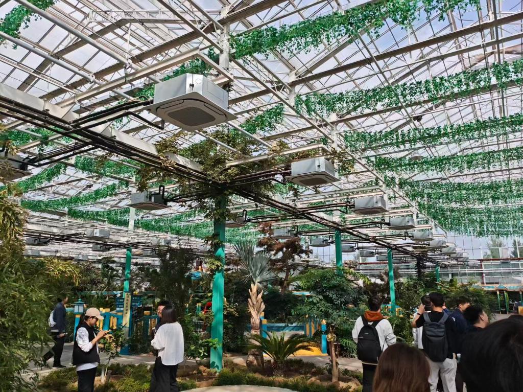 实践期间,同学们集中参观了神木市现代特色农业示范园,作为当地农业科技创新与发展的重要基地,神木市现代特色农业示范园展示了多种先进的农业生产模式和技术应用。在葡萄采摘园,园区工作人员详细介绍了不同品种葡萄的生长习性、栽培技术以及病虫害防治方法,让同学们对葡萄种植有了更直观的认识。在串果番茄种植温室,智能化的灌溉与施肥系统、精准的环境调控设备让同学们对现代农业的高效生产模式有了更深刻的体会。